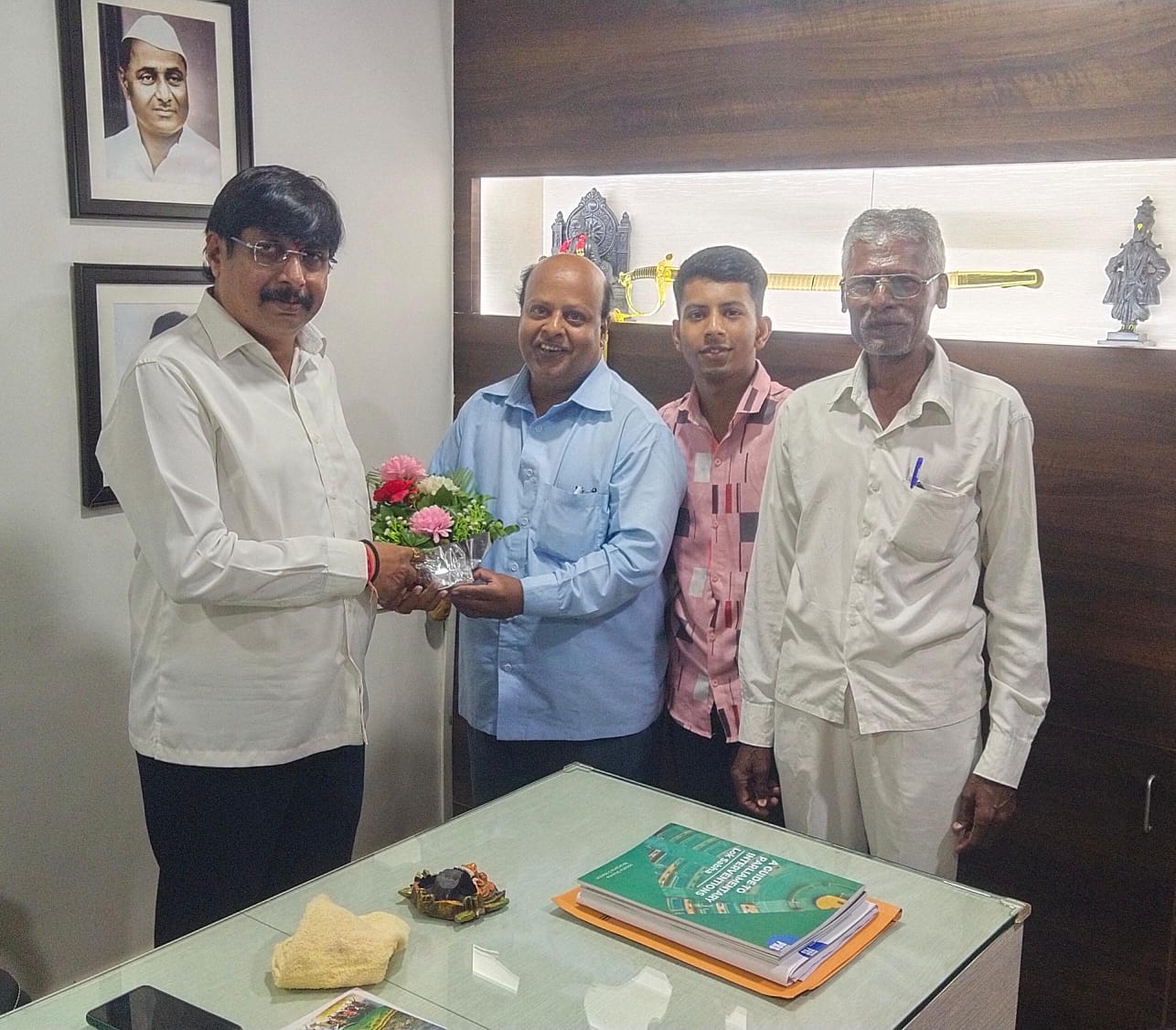 माढा लोकसभा मतदारसंघाचे नूतन खासदार धैर्यशील राजसिंह मोहिते पाटील यांची माढा लोकसभेच्या खासदार पदी निवड झाल्याबद्दल तेज न्यूज व पत्रकार सुरक्षा समिती सोलापूर जिल्हा यांच्यावतीने पत्रकार सुरक्षा समितीचे सोलापूर जिल्हा संपर्कप्रमुख प्रशांत माळवदे यांच्या हस्ते खासदार धैर्यशील मोहिते पाटील यांच्या सत्कार करण्यात आला. यावेळी जेष्ठ पत्रकार साप्ताहिक अकलूज वैभव चे संस्थापक संपादक भाग्यवंत लक्ष्मणराव नायकुडे,ओंकार प्रशांत माळवदे उपस्थित होते.