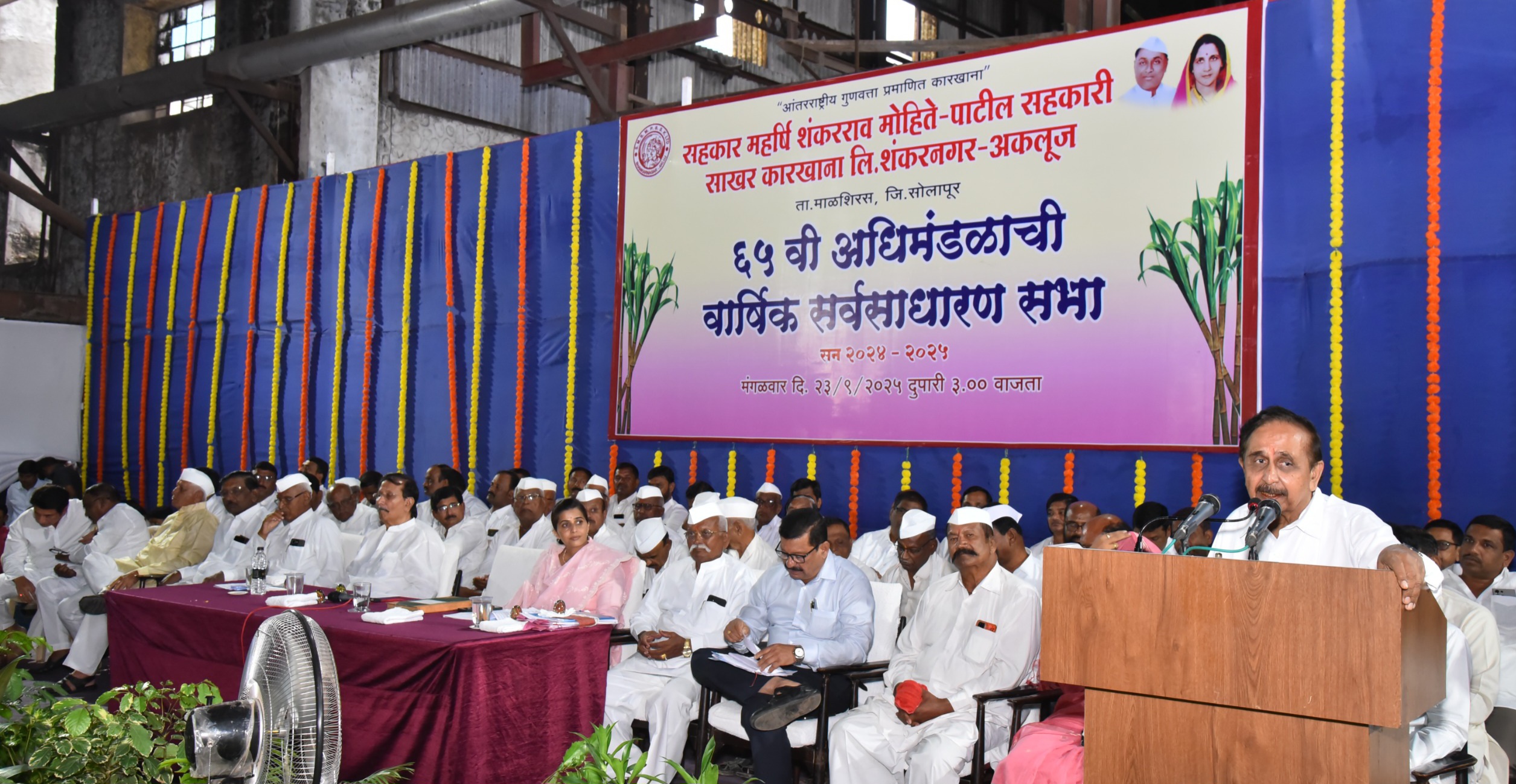 शासनाने ऊस उपलब्धतेचा विचार न करता अनेक कारखान्यांना परवानगी दिली असल्याने अडचणी निर्माण होत असून खाजगी कारखान्यांमुळे सहकारी कारखाने अडचणीत येत असल्याचे मत अध्यक्ष जयसिंह मोहिते पाटील यांनी व्यक्त केले. शंकरनगर-अकलूज येथील सहकार महर्षि शंकरराव मोहिते पाटील सहकारी साखर कारखान्याची ६५ वी वार्षिक सर्वसाधारण सभा खेळीमेळीच्या वातावरणात पार पडली यावेळी अध्यक्ष जयसिंह शंकरराव मोहिते पाटील बोलत होते. यावेळी माजी उपमुख्यमंत्री विजयसिंह मोहिते पाटील, कृषी उत्पन्न बाजार समितीचे सभापती मदनसिंह मोहिते पाटील, आमदार रणजीतसिंह मोहिते पाटील, संचालिका स्वरूपाराणी मोहिते पाटील, अर्जुनसिंह मोहिते पाटील विश्वतेजसिंह मोहिते पाटील, आजी-माजी उपाध्यक्ष आजी, माजी संचालक व सभासद मोठ्या संख्येने उपस्थित होते. वार्षिक सर्वसाधारण सभास्थळी सहकार महर्षि कै. शंकरराव मोहिते पाटील व स्व. आक्कासाहेब यांचे प्रतिमेचे पूजन ज्येष्ठ सभासद नारायण दामोदर बोडके यांच्या हस्ते करण्यात आले.वार्षिक सर्वसाधारण सभेपुढील विषयांचे वाचन कार्यकारी संचालक राजेंद्र केरबा चौगुले यांनी केले. उपस्थित सभासदांनी सर्व तेरा विषयांना एकमुखी मंजुरी दिली. आयत्या वेळेच्या विषयामध्ये महाराष्ट्र सरकारने ओला दुष्काळ जाहीर करण्या बाबतच्या मागणी चा ठराव मांडून तो सर्व संमत झाला.