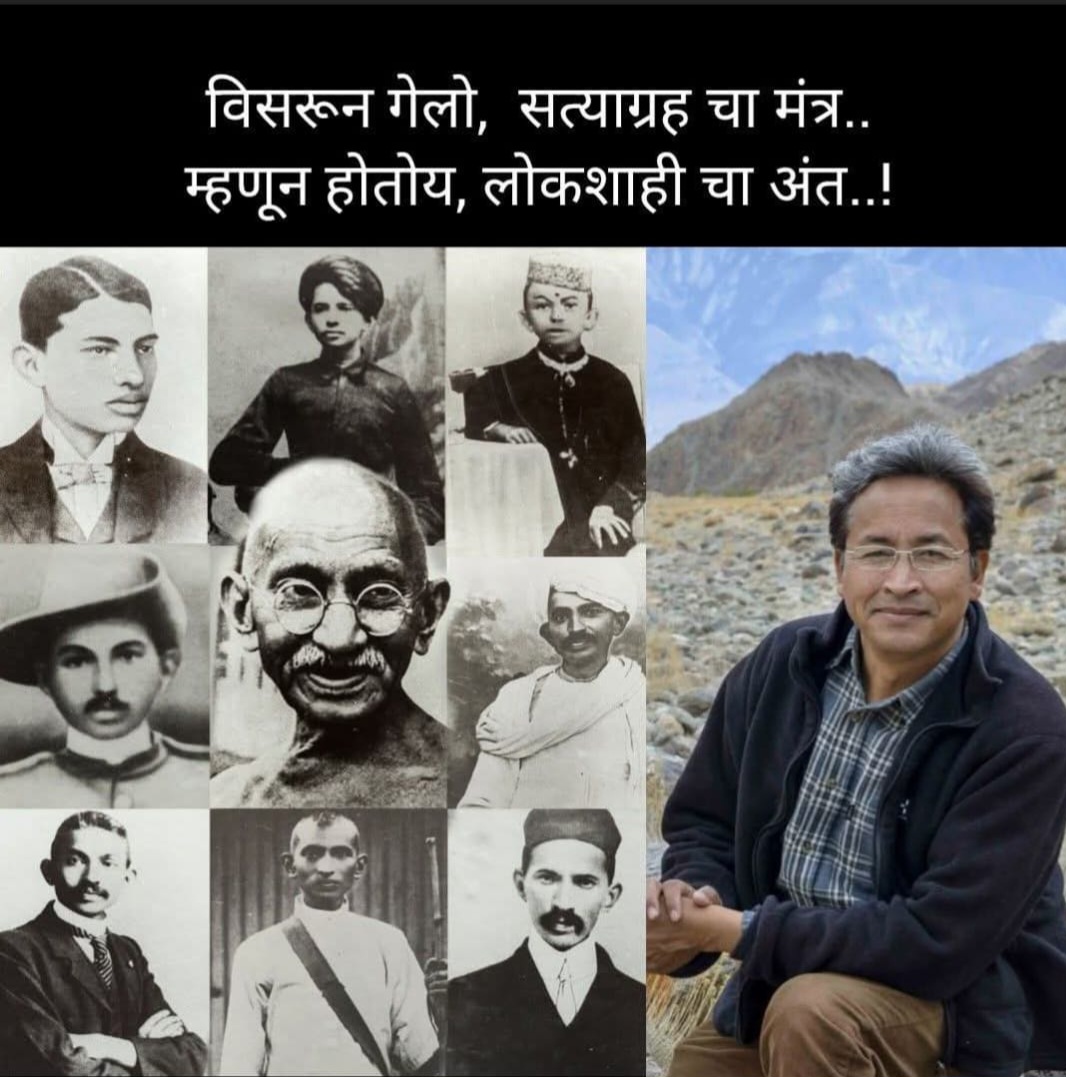अहिंसा मेली की लोकशाही मरते. कारण लोकशाही ही संवादावर जगते,आणि संवाद नेहमी शांततेत होतो.जेव्हा सत्तेने भीती पसरवली, जेव्हा लोकांनी मौन धरलं, तेव्हा लोकशाहीची अंत्ययात्रा सुरू होते. आज प्रश्न फक्त सोनम वांगचूकचा नाही,तो आपल्या विवेकाचा आहे. आज प्रश्न शेतकऱ्यांचा नाही, तो आपल्या अन्नाचा आहे. आज प्रश्न पत्रकारांचा नाही, तो आपल्या माहितीच्या स्वातंत्र्याचा आहे.जर आपण अहिंसेला विसरलो तर उद्या आपल्याकडून बोलण्याचाही अधिकार हरवेल.