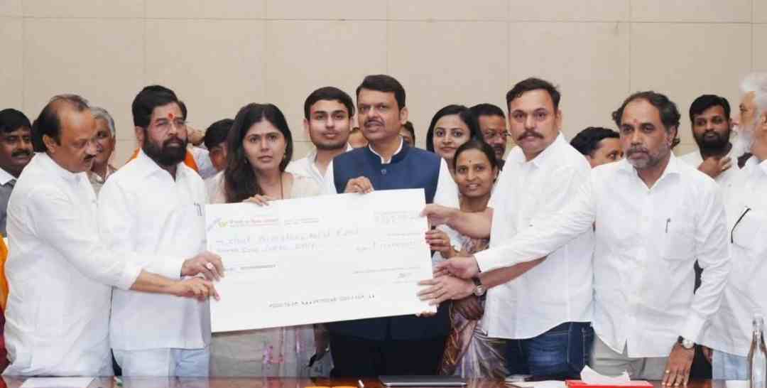 ही मदत रक्कम मुंबई येथे, राज्याचे कर्तबगार लोकप्रिय मुख्यमंत्री देवेंद्र फडणवीस, उपमुख्यमंत्री एकनाथ शिंदे, उपमुख्यमंत्री अजित पवार, कॅबिनेट मंत्री पर्यावरण आणि वातावरण बदल, पशुसंवर्धन मंत्री श्रीमती पंकजा मुंडे, आमदार संभाजीराव पाटील निलंगेकर, मंत्री दादा भुसे आणि मा. श्रीमती यामिनी पाटील यांच्या उपस्थितीत मुख्यमंत्री सहायता निधी धनादेश प्रदान करण्यात आला.