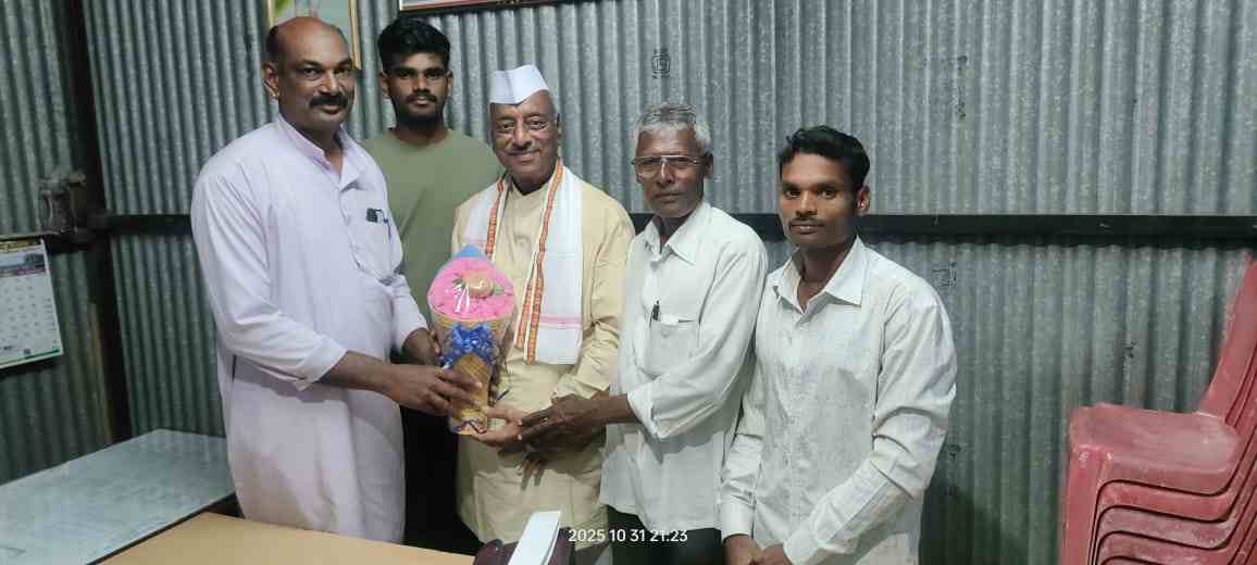 सोलापूर जिल्हा काँग्रेस कमिटी ज्येष्ठ निमंत्रक सदस्य बाबासाहेब बळीराम क्षीरसागर ( माजी कार्याध्यक्ष सोलापूर जिल्हा काँग्रेस कमिटी, माजी सभापती, पंचायत समिती मोहोळ) यांनी शुक्रवार दिनांक 31 ऑक्टोबर 2025 रोजी माळशिरस तालुका काँग्रेस कमिटी अध्यक्ष गिरीश प्रभाकर शेटे यांच्या संपर्क कार्यालय अकलूज येथे रात्री सदिच्छा भेट देऊन गिरीश शेटे यांचे अभिनंदन केले. माळशिरस तालुका काँग्रेस कमिटीच्या वतीने तालुका अध्यक्ष गिरीश प्रभाकर शेटे यांनी काँग्रेसचे ज्येष्ठ नेते बाबासाहेब क्षीरसागर यांना मानाची गांधी टोपी, उपरणे आणि बुफे देऊन सन्मानित केले. याप्रसंगी सेवा जेष्ठ पत्रकार भाग्यवंत लक्ष्मण नायकुडे, युवा नेते यशराज गिरीश शेटे, अविनाश उत्तम जगताप, निलेश जालिंदर पगारे, यांच्यासह अन्य मान्यवर उपस्थित होते. याप्रसंगी जेष्ठ नेते बाबासाहेब शिरसागर यांनी काँग्रेस मधील आपल्या प्रदीर्घ कारकिर्दीतील अनुभवांची शिदोरी युवा कार्यकर्त्यांसाठी मोकळी केली. “आपल्यासारख्या ज्येष्ठांच्या सदिच्छा भेटीमुळे आमच्यासारख्या युवा कार्यकर्त्यांना निश्चितच ऊर्जा प्राप्त झाली आहे”. असे याप्रसंगी तालुका अध्यक्ष गिरीश शेटे यांनी म्हटले.