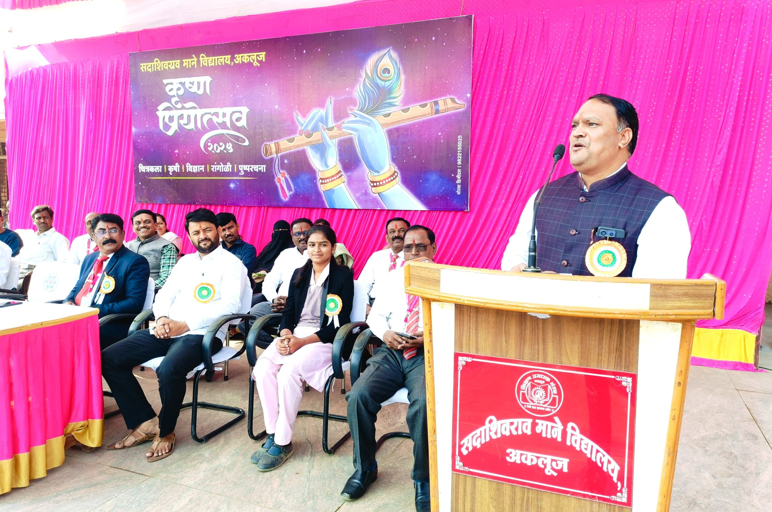 рдЕрдХрд▓реВрдЬ рдпреЗрдереАрд▓ рд╕рджрд╛рд╢рд┐рд╡рд░рд╛рд╡ рдорд╛рдиреЗ рд╡рд┐рджреНрдпрд╛рд▓рдпрд╛рдд рджрд┐. реиреж рд╡ реирез рдиреЛрд╡реНрд╣реЗрдВрдмрд░ рдХрд╛рд▓рд╛рд╡рдзреАрдд рдЖрдпреЛрдЬрд┐рдд рдХреЗрд▓реЗрд▓реНрдпрд╛ рд╡рд╛рд░реНрд╖рд┐рдХ тАШрдХреГрд╖реНрдгрдкреНрд░рд┐рдпреЛрддреНрд╕рд╡- реирежреирелтАЩ рдпрд╛ рдХрд╛рд░реНрдпрдХреНрд░рдорд╛рдЪреЗ рдЙрджрдШрд╛рдЯреНрди рдкреБрдгреНрдпрд╢реНрд▓реЛрдХ рдЕрд╣рд┐рд▓реНрдпрд╛рджреЗрд╡реА рд╣реЛрд│рдХрд░ рд╡рд┐рджреНрдпрд╛рдкреАрда, рд╕реЛрд▓рд╛рдкреВрд░рдЪреЗ рд╕рд╣рд╛рдпреНрдпрдХ рдХреБрд▓рд╕рдЪрд┐рд╡ рдбреЙ. рд╢рд┐рд╡рд╛рдЬреА рд╢рд┐рдВрджреЗ рдпрд╛рдВрдЪреНрдпрд╛ рд╢реБрднрд╣рд╕реНрддреЗ рд╕рдВрдкрдиреНрди рдЭрд╛рд▓реЗ. рдпрд╛рдкреНрд░рд╕рдВрдЧреА рд╢рд┐.рдкреНрд░. рдордВрдбрд│рд╛рдЪреЗ рд╕рдВрдЪрд╛рд▓рдХ рдЙрддреНрдХрд░реНрд╖ рд╢реЗрдЯреЗ, рдкреНрд░рд╢рд╛рд▓рд╛ рд╕рдорд┐рддреАрдЪреЗ рд╕рджрд╕реНрдп ре▓рдб.рд░рдгрдЬрд┐рддрд╕рд┐рдВрд╣ рдорд╛рдиреЗ-рджреЗрд╢рдореБрдЦ, рдореБрдЦреНрдпрд╛рдзреНрдпрд╛рдкрдХ рдЕрдореЛрд▓ рдлреБрд▓реЗ, рдорд╛рддрд╛ рдкрд╛рд▓рдХ рд╕рдВрдШрд╛рдЪреНрдпрд╛ рдЙрдкрд╛рдзреНрдпрдХреНрд╖рд╛ рдЧрд╛рдпрддреНрд░реА рд╢реЗрдЯреЗ, рдкрд░реАрдХреНрд╖рдХ рдПрд╕.рдПрдо. рд╢рд┐рдВрджреЗ, рдПрд╕.рдПрд╕. рднреЛрд╕рд▓реЗ, рд░рдорд╛рдХрд╛рдВрдд рд╕рд╛рдареЗ, рджреАрдкрдХ рд╕рд╛рд│реБрдВрдЦреЗ, рдкрддреНрд░рдХрд╛рд░ рд╢рд╢рд┐рдХрд╛рдВрдд рдХрдбрдмрд╛рдиреЗ, рд▓рдХреНрд╖реНрдореАрдХрд╛рдВрдд рдХреБрд░реБрдбрдХрд░, рд╡рд┐рджреНрдпрд╛рд░реНрдереА рдкреНрд░рддрд┐рдирд┐рдзреА рдХреАрд░реНрддреА рдХрджрдо, рд╢реНрд░реЗрдпрд╛ рджреЗрд╢рдореБрдЦ рдЙрдкрд╕реНрдерд┐рдд рд╣реЛрддреЗ.