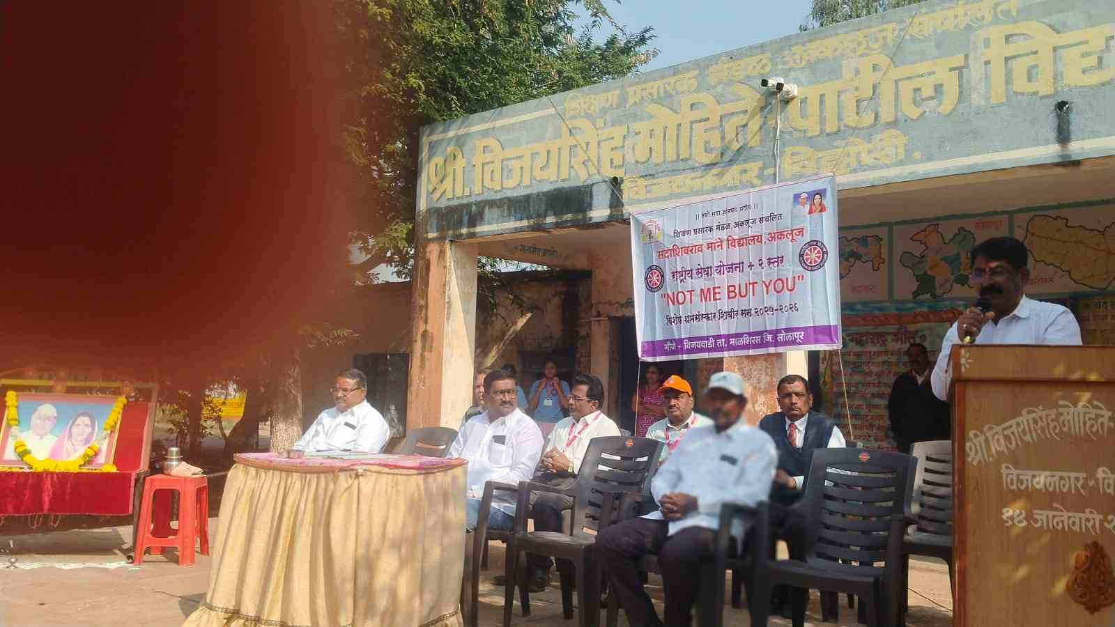 राष्ट्रीय सेवा योजनेच्या विशेष श्रमसंस्कार शिबिर उद्घाटनप्रसंगी स्थानिक प्रशाला समिती सदस्य अप्पासाहेब मगर, विजयवाडी गावाचे सरपंच, उपसरपंच, बाळासाहेब इंगळे, हनुमंत पवार, ग्रामसेविका मनिषा साठे, मुख्याध्यापक मदन माने देशमुख, शाळेचे शिक्षक, गावातील ग्रामस्थ तसेच विद्यालयाचे उपप्राचार्य सुभाष मुंडफणे, संजय जाधव, शिक्षक शिक्षकेतर सेवक व राष्ट्रीय सेवा योजनेचे 50 स्वयंसेवक उपस्थित होते.