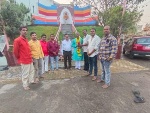 प्रारंभी विश्वरत्न डॉ बाबासाहेब आंबेडकर स्मारक स्थळी त्यांच्या पुतळ्यास पुष्पहार घालून अभिवादन करण्यात आले.