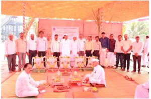 प्रथम संचालक लक्ष्मण खूपसे व पांडुरंग घाडगे यांच्या हस्ते साखर पोत्याचे पूजन करण्यात आले.