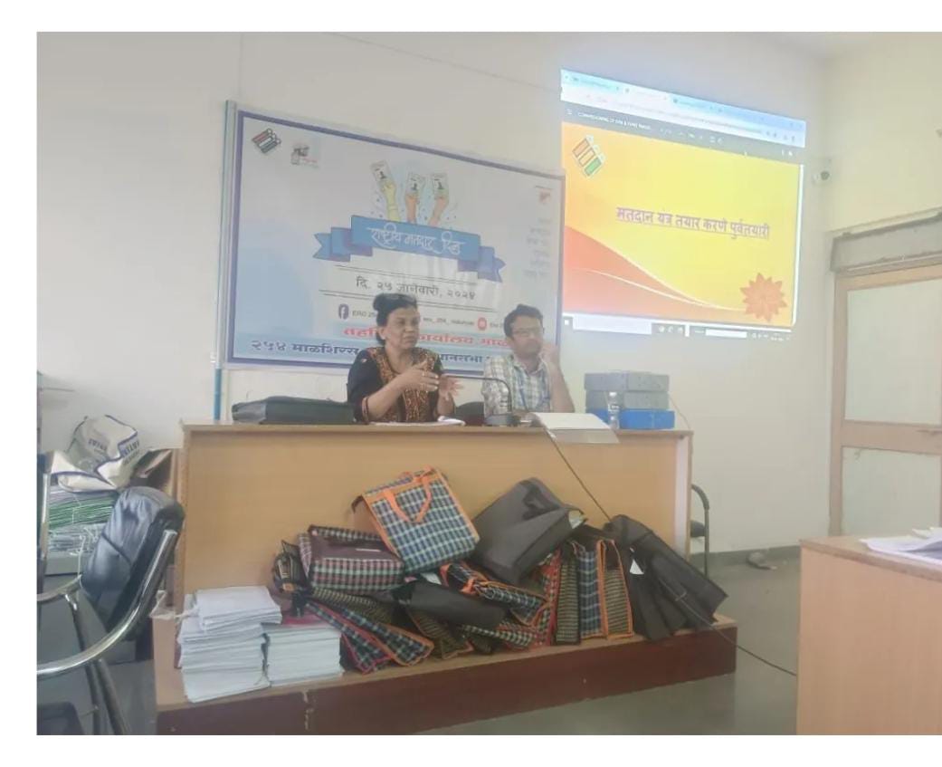 त्याची पूर्व तयारी म्हणून आज सहाय्यक निवडणूक अधिकारी, प्रांताधिकारी विजया पांगारकर यांनी मतदान यंत्रे तयार करून घेणेसाठी नेमण्यात आलेल्या सर्व तलाठी मंडल अधिकारी ,क्षेत्रीय अधिकारी याना प्रशिक्षण दिले. प्रशिक्षणासाठी माळशिरस तालुक्याचे तहसीलदार सुरेश शेजुळ यांनी ही सहभाग घेतला .असे नोडल अधिकारी ( मीडिया) तथा सहा.गटविकास अधिकारी किरण मोरे यांनी माहिती दिली