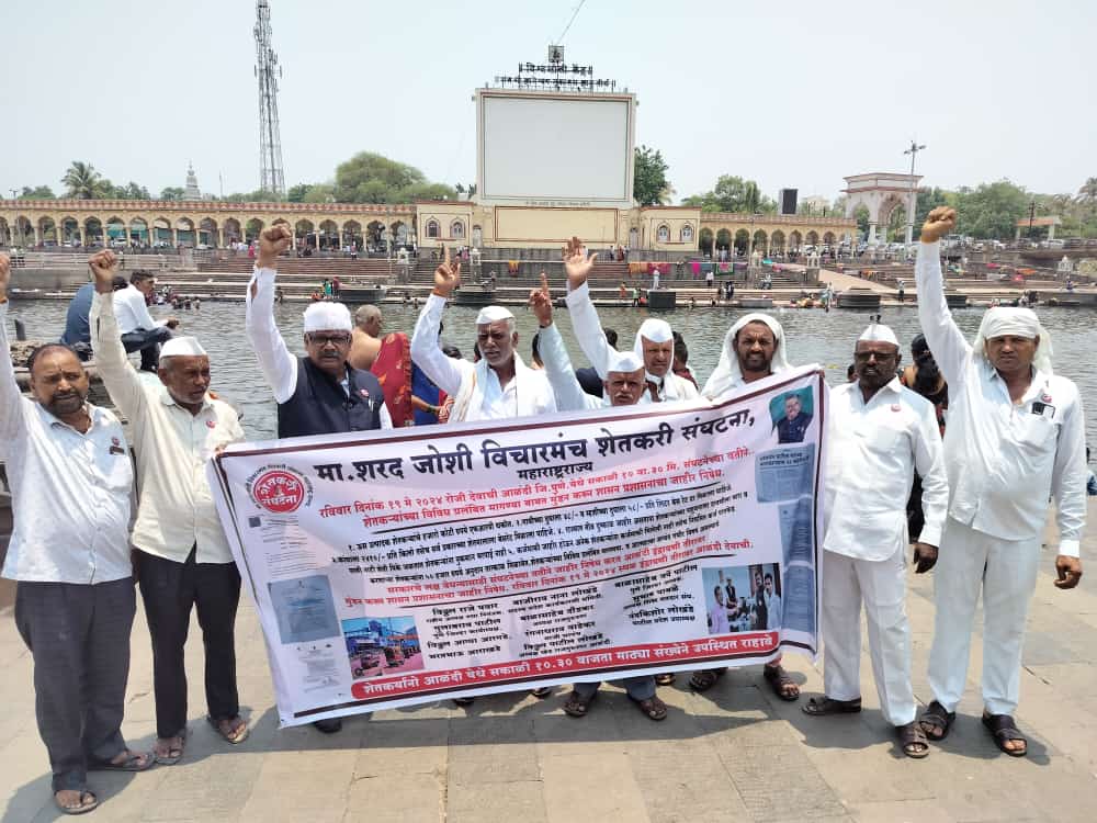 देवाची आळंदी राजगुरुनगर खेड येथे दि.19 मे 2024 रोजी संघटनेचे राष्ट्रीय अध्यक्ष तथा निमंत्रक विठ्ठल राजे पवार यांनी स्वतः मुंडन करून सरकारचा जाहीर निषेध केला. यावेळी शेतकरी संघटनेचे पुणे जिल्हा अध्यक्ष बाळासाहेब वर्पे पाटील, खेड राजगुरुनगर चे अध्यक्ष विठ्ठल पाटील लोखंडे, संघटनेचे जिल्हा उपाध्यक्ष दिलीप वरपे पाटील, सदस्य सुरेश भोसले, बाळासाहेब पवार अध्यक्ष रांजणगाव शिरूर, राणा सत्यजित सिंह राजे पवार शेकडो कार्यकर्ते, महीला पदाधिकारी उपस्थित होते. शेतकऱ्यांच्या विविध मागण्या राज्याने केंद्र सरकारकडे प्रलंबित असल्याने सर्व पदाधिकाऱ्यांनी या ठिकाणी राज्य आणि केंद्र सरकारच्या चुकीच्या कार्यपद्धतीचा जाहीर निषेध केलेला आहे.