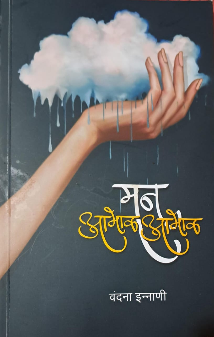 पुण्याच्या कवयित्री वंदना इन्नाणी यांचा “मन आभाळ आभाळ” हा कवितासंग्रह वाचनात आला. या कवितासंग्रहाच्या मुखपृष्ठावर असलेले कलात्मक चित्र मनाला विचार करायला लावणारे दिसून आले. या मुखपृष्ठावर एक स्रीचा हात दाखवला आहे, या हातात पांढरशुभ्र ढगाचा पुंजका वर उचलून धरला आहे तर या ढगातून पाण्याचे आसवे गळत असल्याचा भास होत आहे आणि या कलाकृतीचे शीर्षक पावसाच्या धारांसारखे ओघळते दाखवले आहे. अतिशय सुंदर आणि अर्थपूर्ण अशा मुखपृष्ठावर कवयित्रीच्या भावभावनांचा कल्लोळ पहायला मिळतो. आभाळात ज्याप्रमाणे वीज कडाडत असते पण हातात धरता येत नाही त्याप्रमाणे मानवी मनाच्या संवेदनशील तरंग लहरी दिसत नाहीत , हातात धरता येत नाहीत मात्र जाणवत असतात. “मन आभाळ आभाळ” या कवितासंग्रहातील कविता अशाच प्रकारे मनातल्या भावनांना वाट मोकळी करून देतात. मन आभाळ होऊन जेव्हा भरून येते तेव्हा पावसाच्या सरीसारखे शब्द बरसत असतात हे कवयित्री संवेदनशील मनाच्या असल्याचे मुखपृष्ठावरून दिसून येते.