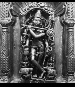 या मूर्तीच्या अष्टभुजा पैकी कृष्णाच्या दोन हातात गाईंना मुग्ध करणारी मुरली आहे.एका हाताच्या करंगळीवर गोवर्धन पर्वत तर इतर हातात शंख,चक्र, गदा, गोश्रृंगवाद्य आहे. भगवंताच्या चरण कमळाजवळ दोन गोपी असून पैकी एक सनई वादन तर दुसरी मृदंग वाजवत आहे. सवस्तधेनुसह भगवंताच्या अंगास कालियाने विळखा घातला असून तो भगवंताच्या कानास दंश करत आहे. कमरेस लंगोट असून त्यावर घागऱ्याचा दागिना आहे.