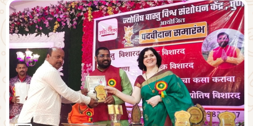 рдкрдВрдврд░рдкреВрд░ рддрд╛рд▓реБрдХрд╛ рднрд╛рд│рд╡рдгреА рдпреЗрдереАрд▓ рдкреНрд░рд╢рд╛рдВрдд рд╢реНрд░реАрдХрд╛рдВрдд рдорд╛рд│рд╡рджреЗ рдпрд╛рдВрдирд╛ рдЬреНрдпреЛрддрд┐рд╖ рд╡рд╛рд╕реНрддреБ рд╡рд┐рд╢реНрд╡ рд╕рдВрд╢реЛрдзрди рдХреЗрдВрджреНрд░ рд╕рдВрд╕реНрдерд╛ рдкреБрдгреЗ рдпрд╛рдВрдЪреНрдпрд╛рд╡рддреАрдиреЗ рд╡рд╛рд╕реНрддреБрд╢рд╛рд╕реНрддреНрд░ рд╡рд┐рд╢рд╛рд░рдж рдкреБрд░рд╕реНрдХрд╛рд░ рджреЗрдКрди рд╕рдиреНрдорд╛рдирд┐рдд рдХрд░рдгреНрдпрд╛рдд рдЖрд▓реЗ.