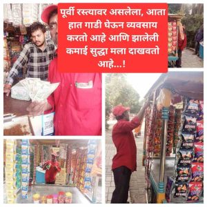 असाच दुसरा माणूस… रस्त्यावर पडून होता, यालाही हॉस्पिटलमध्ये ऍडमिट केले…. पूर्णतः बरा झाला…. आता याला हात गाडी देऊन अनेक वस्तू विक्री करण्यासाठी दिल्या आहेत.