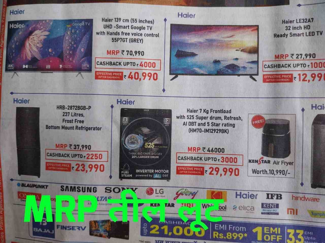 एक उदा. टीव्ही ची एमआरपी आहे 70,990 रु. व प्रत्यक्ष विक्री 40,990 रु. फक्त.
