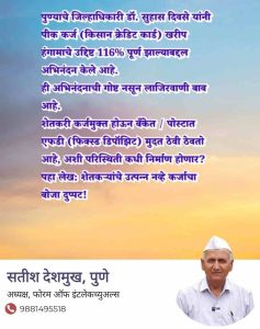 पुण्याचे जिल्हाधिकारी डॉ. सुहास दिवसे यांनी पीक कर्ज (किसान क्रेडिट कार्ड) खरीप हंगामाचे उद्दिष्ट 116% पूर्ण झाल्याबद्दल अभिनंदन केले आहे.