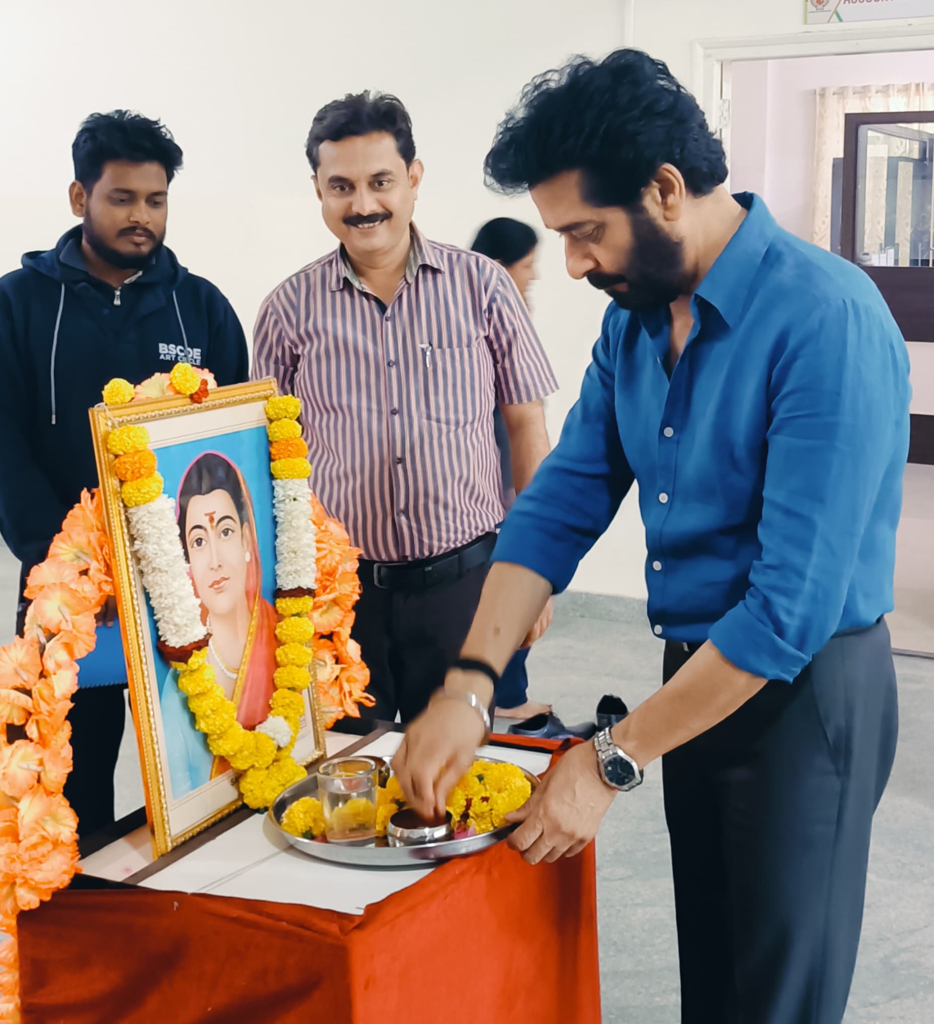 क्रांतीज्योती सावित्रीबाई फुले यांच्या प्रतिमेचे पूजन सिनेअभिनेता अशोक शिंदे यांच्या हस्ते झाले. त्यानंतर त्यांनी सावित्रीबाई फुले यांच्या जीवन चरित्राविषयी बोलताना सांगितले कि सावित्रीबाई फुले या पहिल्या महिला शिक्षिका होत्या. महिलांच्या शिक्षणासाठी त्यांचा फार मोठा त्याग व मोलाचा वाटा आहे. आज त्यांच्यामुळेच महिला पुरुषांच्या खांद्याला खांदा लावुन काम करत आहेत.