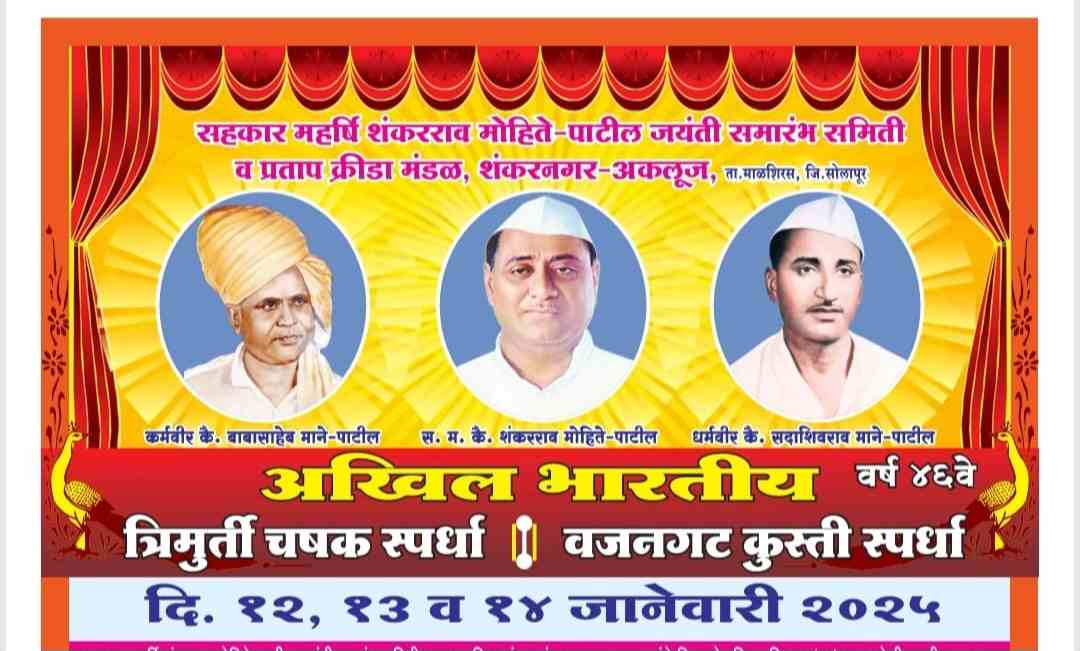 рд╕рд╣рдХрд╛рд░ рдорд╣рд░реНрд╖рд┐ рд╢рдВрдХрд░рд░рд╛рд╡ рдореЛрд╣рд┐рддреЗ рдкрд╛рдЯреАрд▓ рдЬрдпрдВрддреА рд╕рдорд╛рд░рдВрдн рд╕рдорд┐рддреА рд╡ рдкреНрд░рддрд╛рдк рдХреНрд░реАрдбрд╛ рдордВрдбрд│ рд╢рдВрдХрд░рдирдЧрд░ рдЕрдХрд▓реВрдЬ рдпрд╛рдВрдЪреНрдпрд╛рд╡рддреАрдиреЗ “рд╢рд┐рд╡рддреАрд░реНрде рдЖрдЦрд╛рдЩрд╛” рд╢рдВрдХрд░рдирдЧрд░ -рдЕрдХрд▓реВрдЬ рдпреЗрдереЗ рджрд┐рдирд╛рдВрдХ 12, 13 рд╡ 14 рдЬрд╛рдиреЗрд╡рд╛рд░реА 2025 рдпрд╛ рдХрд╛рд▓рд╛рд╡рдзреАрдд рдЕрдЦрд┐рд▓ рднрд╛рд░рддреАрдп рддреНрд░рд┐рдореВрд░реНрддреА рдЪрд╖рдХ рд╕реНрдкрд░реНрдзрд╛ рд╡ рд╡рдЬрди рдЧрдЯ рдХреБрд╕реНрддреА рд╕реНрдкрд░реНрдзреЗрдЪреЗ рдЖрдпреЛрдЬрди рдХреЗрд▓реЗ рдЕрд╕рд▓реНрдпрд╛рдЪреА рдорд╛рд╣рд┐рддреА рдЬрдпрдВрддреА рд╕рдорд╛рд░рдВрдн рд╕рдорд┐рддреАрдЪреЗ рдЕрдзреНрдпрдХреНрд╖ рдорджрдирд╕рд┐рдВрд╣ рдореЛрд╣рд┐рддреЗ рдкрд╛рдЯреАрд▓ рдпрд╛рдВрдиреА рджрд┐рд▓реА.