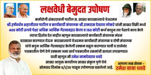 рдЖрдЬ рд╕реЛрдорд╡рд╛рд░ рджрд┐рдирд╛рдВрдХ 6.1.25 рдкрд╛рд╕реВрди рдореА рд░рдореЗрд╢ рдирд╛рдорджреЗрд╡рд░рд╛рд╡ рдзрд╡рдбреЗ, рд╕рд╛рдЦрд░рдЖрдпреБрдХреНрдд рдХрд╛рд░реНрдпрд╛рд▓рдп рдкреБрдгреЗ рдпреЗрдереЗ рд╕реЛрдмрдд рдкрд╛рдард╡рд▓реЗрд▓реНрдпрд╛ рд╕рдВрдХреНрд╖рд┐рдкреНрдд рддрдкрд╢реАрд▓ рдкрддреНрд░рдХрд╛рддреАрд▓ рдорд╛рдЧрдгреНрдпрд╛рд╕рд╛рдареА рд╢рд╛рд╕рдирд╛рдЪреЗ рд▓рдХреНрд╖ рд╡реЗрдзрдгреНрдпрд╛рд╕рд╛рдареА рд╡ рд╕рдВрдмрдВрдзрд┐рдд рдХрд╛рд░рдЦрд╛рдиреНрдпрд╛рд╡рд░реАрд▓ рдЪреЗрдЕрд░рдорди┬а рд╣рд░реНрд╖рд╡рд░реНрдзрди рд╢рд╣рд╛рдЬреАрд░рд╛рд╡ рдкрд╛рдЯреАрд▓ рд╡ рдХрд╛рд░реНрдпрдХрд╛рд░реА рд╕рдВрдЪрд╛рд▓рдХ рджреЗрд╡рд░рд╛рд╡ рд░рд╛рдорджрд╛рд╕ рд▓реЛрдХрд░реЗ рдпрд╛рдВрдЪреЗ рдХрд╛рд░реНрдпрдХрд╛рд░реА рдордВрдбрд│ рдмрд░рдЦрд╛рд╕реНрдд рдХрд░реВрди рдЧреИрд░рд╡реНрдпрд╡рд╣рд╛рд░ рдЭрд╛рд▓реЗрд▓реА рд░рдХреНрдХрдо рд╡рд╕реВрд▓ рдХрд░рдгреНрдпрд╛рдд рдпрд╛рд╡реА рд╡ 150 рдХреЛрдЯреА рд░реБрдкрдпреЗ рдХрд░реНрдЬрд╛рдЪрд╛ рд╣рд┐рд╢реЛрдм рджреНрдпрд╛рд╡рд╛ рддрд╛рд│реЗрдмрдВрдж рдкрддреНрд░рдХрд╛рддреАрд▓ рдпреЗрдгреЗ рджреЗрдгреЗ рд░рдХрдорд╛ рдЬрдорд╛ рдЦрд░реНрдЪ рдкрддреНрд░рдХрд╛рддреАрд▓ рд░рдХрдорд╛рдВрдЪреА рд╕рддреНрдпрддрд╛ рддрдкрд╛рд╕рдгреНрдпрд╛рдд рдпрд╛рд╡реА рдореНрд╣рдгреВрди рдореА рдЙрдкреЛрд╖рдгрд╛рд╕ рдмрд╕рд▓реЗрд▓реЛ рдЖрд╣реЗ рдЖрдкрд▓реЗ рд╕рд░реНрд╡рд╛рдВрдЪреЗ рд╕рд╣рдХрд╛рд░реНрдп рдЖрд╣реЗрдд рдЖрдкрд▓реЗ рдЖрд╢реАрд░реНрд╡рд╛рдж рд▓рд╛рднрд╛рд╡реЗрдд рд╣реА рд╡рд┐рдирдВрддреА рдзрдиреНрдпрд╡рд╛рдж ! рдЬрдп рд╣рд┐рдВрдж !!