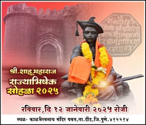 मुंबई दिनांक 11 जानेवारी 2025 : श्री काळभैरवनाथ मंदिर यवत (ता. दौंड, जिल्हा पुणे) येथे भीमथडी चे भागातील राजेभोसले परिवाराचे व भीमथडी चे भागातील ऐतिहासिक सरदार घराणे चे वशंज यांचे उपस्थितीत रविवारी दिनांक 12/1/2025 रोजी सकाळी 9 ते 11 यावेळेत राजमाता जिजाऊ जयंती व छत्रपती थोरले शाहू महाराज राज्यभिषेक सोहळा 2025 आयोजित केला आहे. तरी सर्वांनी उपस्थित रहावे अशी नम्र विनंती आयोजक दोरगे शिलेदार परिवार व समस्त ग्रामस्त यवत यांच्यावतीने करण्यात आले आहे. या सोहळ्यासाठी नॅशनल युनियन बॅकवर्ड एसएससी अँड मॅनॉरिटी महासंघ दिल्ली तसेच शरद जोशी विचार मंच शेतकरी संघटना महासंघ महाराष्ट्र राज्य उपाध्यक्ष, राज्य संपर्क व प्रसिद्धी प्रमुख भाग्यवंत लक्ष्मणराव नायकुडे (सेवा जेष्ठ पत्रकार) अकलूज यांना निमंत्रित केले आहे.
