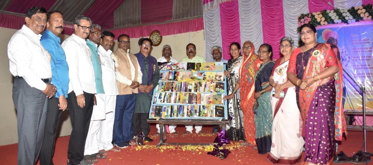 рдкреБрд░рд╕реНрдХрд╛рд░рдкреНрд░рджрд╛рди рд╕реЛрд╣рд│реНрдпрд╛рдЪреЗ рджреБрд╕рд▒реНрдпрд╛ рд╕рддреНрд░рд╛рдд рдбреЙ рдорд╛рд╣реЗрд╢реНрд╡рд░реА рдЧрд╛рд╡рд┐рдд рдпрд╛рдВрдЪреНрдпрд╛ рдЕрдзреНрдпрдХреНрд╖рддреЗрдЦрд╛рд▓реА рдЙрджреНрдШрд╛рдЯрдХ рдбреЙ рдХреИрд▓рд╛рд╕ рджреМрдВрдб рдпрд╛рдВрдЪреНрдпрд╛ рд╣рд╕реНрддреЗ рд░рд┐рдмреАрди рдХрд╛рдкреВрди, рдорд╛рдиреНрдпрд╡рд░рд╛рдВрдЪреНрдпрд╛ рд╣рд╕реНрддреЗ рд╕рд╛рд╣рд┐рддреНрдп рдХрд▓рд╛рдХреГрддреАрдВрд╡рд░ рдкреБрд╖реНрдкрд╡реГрд╖реНрдЯреА рдХрд░реВрди рд╕реЛрд╣рд│реНрдпрд╛рдЪреЗ рдЙрджреНрдШрд╛рдЯрди рдХрд░рдгреНрдпрд╛рдд рдЖрд▓реЗ. рдХрд▓рд╛рдХреГрддреАрдВрд╡рд░ рдкреБрд╖реНрдкрд╡реГрд╖реНрдЯреА рдХрд░реВрди рд╕реЛрд╣рд│реНрдпрд╛рдЪреЗ рдЙрджреНрдШрд╛рдЯрди рдХрд░рдгреЗ рд╣рд╛ рдЕрднрд┐рдирд╡ рдкреНрд░рдпреЛрдЧ рдорд╣рд╛рд░рд╛рд╖реНрдЯреНрд░рд╛рдд рдПрдХрдореЗрд╡ рдЙрджрд╛рд╣рд░рдг рдпрд╛ рд╕реЛрд╣рд│реНрдпрд╛рдд рдкрд╣рд╛рд╡рдпрд╛рд╕ рдорд┐рд│рд╛рд▓реЗ. рддреНрдпрд╛рдирдВрддрд░ рдЬреЗрд╖реНрда рд╕рд╛рд╣рд┐рддреНрдпрд┐рдХ рд╕реБрднрд╛рд╖ рд╕реЛрдирд╡рдгреЗ рдпрд╛рдВрдиреА рдХрд╛рд░реНрдпрд╛рдХреНрд░рдордЪреЗ рдкреНрд░рд╛рд╕реНрддрд╛рд╡рд┐рдХ рдХреЗрд▓реЗ. рдпрд╛рд╡реЗрд│реА рдирд╛рд╢рд┐рдХ рдпреЗрдереВрди рд╡рд╕рдВрдд рд╡реНрдпрд╛рдЦреНрдпрд╛рдирдорд╛рд▓реЗрдЪреЗ рдЕрдзреНрдпрдХреНрд╖ рд╢реНрд░реАрдХрд╛рдВрдд рдмреЗрдгреА, рдЬреЗрд╖реНрда рдкрддреНрд░рдХрд╛рд░ рднрд╛рд╕реНрдХрд░ рдХрджрдо, рдЪрд┐рддреНрд░рдкрдЯ рдирд┐рд░реНрдорд╛рддреЗ рд╕рдВрджреАрдк рд░рд╛рдХреНрд╖реЗ, рд╕рд╛рдкреНрддрд╛рд╣рд┐рдХ рдЕрдХрд▓реВрдЬ рд╡реИрднрд╡рдЪреЗ рд╕рдВрд╕реНрдерд╛рдкрдХ рд╕рдВрдкрд╛рджрдХ рд╕реЗрд╡рд╛ рдЬреЗрд╖реНрда рдкрддреНрд░рдХрд╛рд░ рднрд╛рдЧреНрдпрд╡рдВрдд рд▓рдХреНрд╖реНрдордгрд░рд╛рд╡ рдирд╛рдпрдХреБрдбреЗ, рдкреНрд░рд╕рд┐рджреНрдз рд▓реЗрдЦрд┐рдХрд╛ рд░рд┐рддрд╛рддрд╛рдИ рдЬрд╛рдзрд╡ рдЖрджреАрдВрдиреА рд╢рд┐рд╡рд╛рдмрд╛рдмрд╛ рд╡рд╛рдШ рдкреНрд░рддрд┐рд╖реНрдард╛рдирдЪреНрдпрд╛ рдЙрдкрдХреНрд░рдорд╛рдЪреЗ рдХреМрддреБрдХ рдХрд░реВрди рд╕рд╛рд╣рд┐рддреНрдп рд╕рдВрдореЗрд▓рди рдЖрдгрд┐ рдкреБрд░рд╕реНрдХрд╛рд░ рдпрд╛рдмрд╛рдмрдд рдЖрдкрд▓реЗ рдордиреЛрдЧрдд рд╡реНрдпрдХреНрдд рдХреЗрд▓реЗ.
