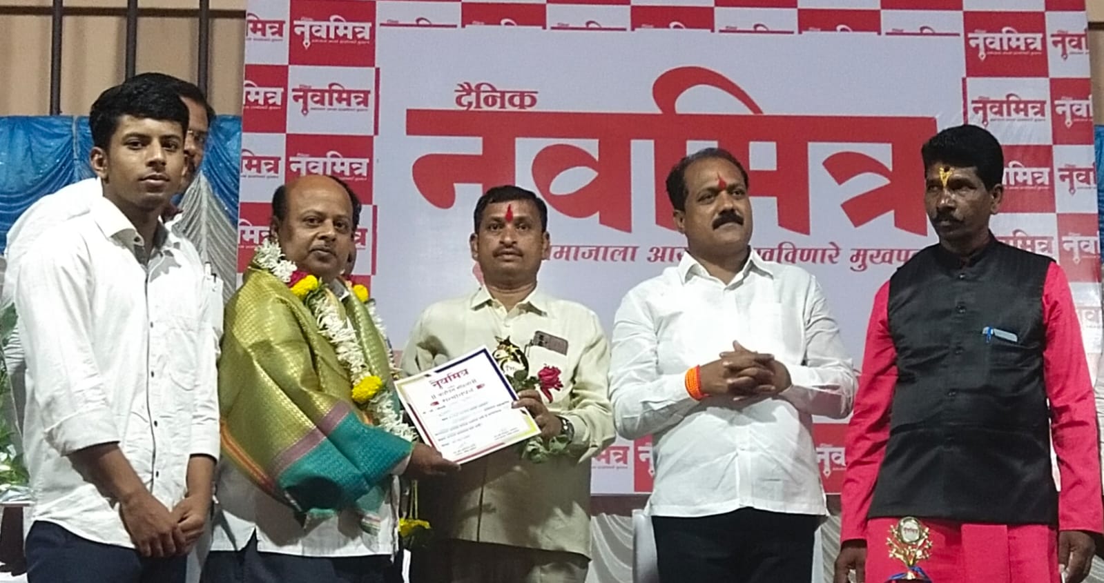 दिनांक 12/6/2025 : पंढरपूर येथे दैनिक नवमित्रच्या तिसऱ्या वर्धापनदिनानिमित्त येथील रखुमाई सभागृहात आदर्श समाज भूषण पुरस्कारासह शाल, प्रमाणपत्र सन्मान चिन्ह,पुष्पहार देऊन प्रशांत माळवदे यांना सन्मानित करण्यात आले.