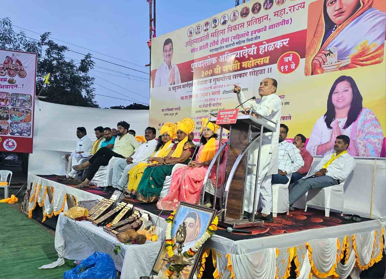 рдпрд╛рд╡реЗрд│реА рдЕрд╣рд┐рд▓реНрдпрд╛рд░рддреНрди рдкреБрд░рд╕реНрдХрд╛рд░рд╛рдиреЗ рдХрд▓рд╛, рдирд╛рдЯреНрдп, рд╕рд╛рд╣рд┐рддреНрдп рд╕рд╛рдареА рдкреНрд░реЗрд░рдгрд╛рджрд╛рдпреА рдХрд╛рд░реНрдп рдХрд░рдгрд╛рд░реЗ рдЬреНрдпреЗрд╖реНрда рдорд╛рдЬреА рдирдЧрд░рд╕реЗрд╡рдХ рдХрд┐рд░рдг рдЧреБрдЬрд░ рдпрд╛рдВрдирд╛ рдЧреМрд░рд╡рдгреНрдпрд╛рдд рдЖрд▓реЗ. рдпрд╛рд╡реЗрд│реА рдкреБрдгреНрдпрд╢реНрд▓реЛрдХ рдЕрд╣рд┐рд▓реНрдпрд╛рджреЗрд╡реА рд╣реЛрд│рдХрд░ рдпрд╛рдВрдЪреНрдпрд╛ рддреНрд░рд┐рд╢рддрд╛рдмреНрджреА рдЬрдпрдВрддреА рдирд┐рдорд┐рддреНрдд рдордиреЛрдЧрдд рд╡реНрдпрдХреНрдд рдХрд░рддрд╛рдирд╛ рд╕рд░реНрд╡рд╛рдВрдирд╛ рд╢реБрднреЗрдЪреНрдЫрд╛ рджреЗрдд рдЕрд╣рд┐рд▓реНрдпрд╛рджреЗрд╡реА рд╣реЛрд│рдХрд░ рдпрд╛рдВрдЪреНрдпрд╛ рдХрд╛рд░реНрдпрд╛рд▓рд╛ рдереЛрдбрдХреНрдпрд╛рдд рдЙрдЬрд╛рд│рд╛ рджрд┐рд▓рд╛.рдпрд╛ рдЙрддреНрд╕рд╡рд╛рдЪреЗ рдЖрдпреЛрдЬрдХ рдХрд▓реНрдпрд╛рдгреА рд╡рд╛рдШрдореЛрдбреЗ рдпрд╛рдВрдЪреНрдпрд╛ рд╕рд╛рдорд╛рдЬрд┐рдХ рд╡ рд╕рдВрдШрдЯрди рдХрд╛рд░реНрдпрд╛рдЪреЗ рдХреМрддреБрдХ рдХреЗрд▓реЗ.рд╕рд░реНрд╡ рдорд╣рд╛рдкреБрд░реБрд╖рд╛рдВрдЪреНрдпрд╛ рдЬрдпрдВрддреА рд╡реНрдпрд╛рдкрдХ рд╕реНрд╡рд░реБрдкрд╛рдд рд╕рд╛рдЬрд▒реНрдпрд╛ рдХреЗрд▓реНрдпрд╛ рдЬрд╛рд╡реНрдпрд╛рдд, рдЕрд╢реА рднрд╛рд╡рдирд╛ рд╡реНрдпрдХреНрдд рдХреЗрд▓реА. рддрд╕реЗрдЪ рд╡рд┐рдзреАрдЬреНрдЮ ре▓рдб рд╕реБрдкреНрд░рд┐рдпрд╛ рдмрд░реНрдЧреЗ рдпрд╛рдВрдиреА рдЖрдкрд▓реЗ рдордиреЛрдЧрдд рд╡реНрдпрдХреНрдд рдХрд░рдд рд╢реБрднреЗрдЪреНрдЫрд╛ рджреЗрдд рдорд╣рд┐рд▓рд╛рдВрдирд╛ рдкреБрдвреЗ рдпреЗрдКрди рдХрд╛рд░реНрдп рдХреЗрд▓реЗ рдкрд╛рд╣рд┐рдЬреЗ, рдорд╣рд┐рд▓рд╛ рдХреБрдареЗрд╣реА рдХрдореА рдирд╛рд╣реАрдд рдЕрд╕рд╛ рд╕рдВрджреЗрд╢ рджрд┐рд▓рд╛.